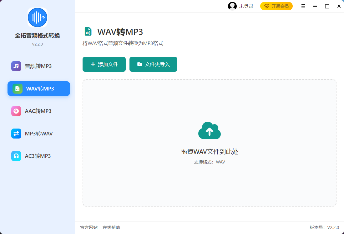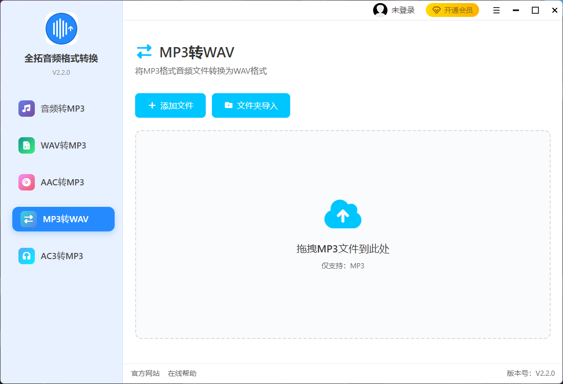 MP3转WAV功能支持一键拖拽多个MP3文件进行批量转换,快速将MP3格式转换为WAV格式。支持添加文件或文件夹导入,拖拽MP3文件到指定区域即可开始转换。转换过程保持原始音质,转换速度快,操作简单便捷。